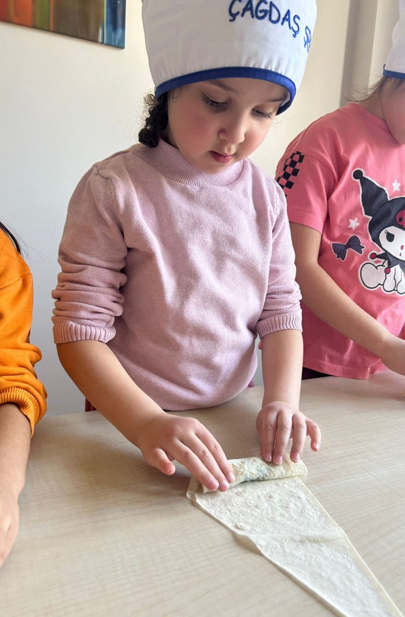 Hasat edilen taze ıspanaklar daha sonra çocuk mutfağına taşındı. Hijyen kurallarına dikkat edilerek temizlenen ıspanaklarla öğrenciler hep birlikte ıspanaklı börek hazırladı. Kendi ektikleri ve büyümesini izledikleri ürünlerle hazırlanan börekleri tatmak ise öğrenciler için etkinliğin en keyifli anı oldu.