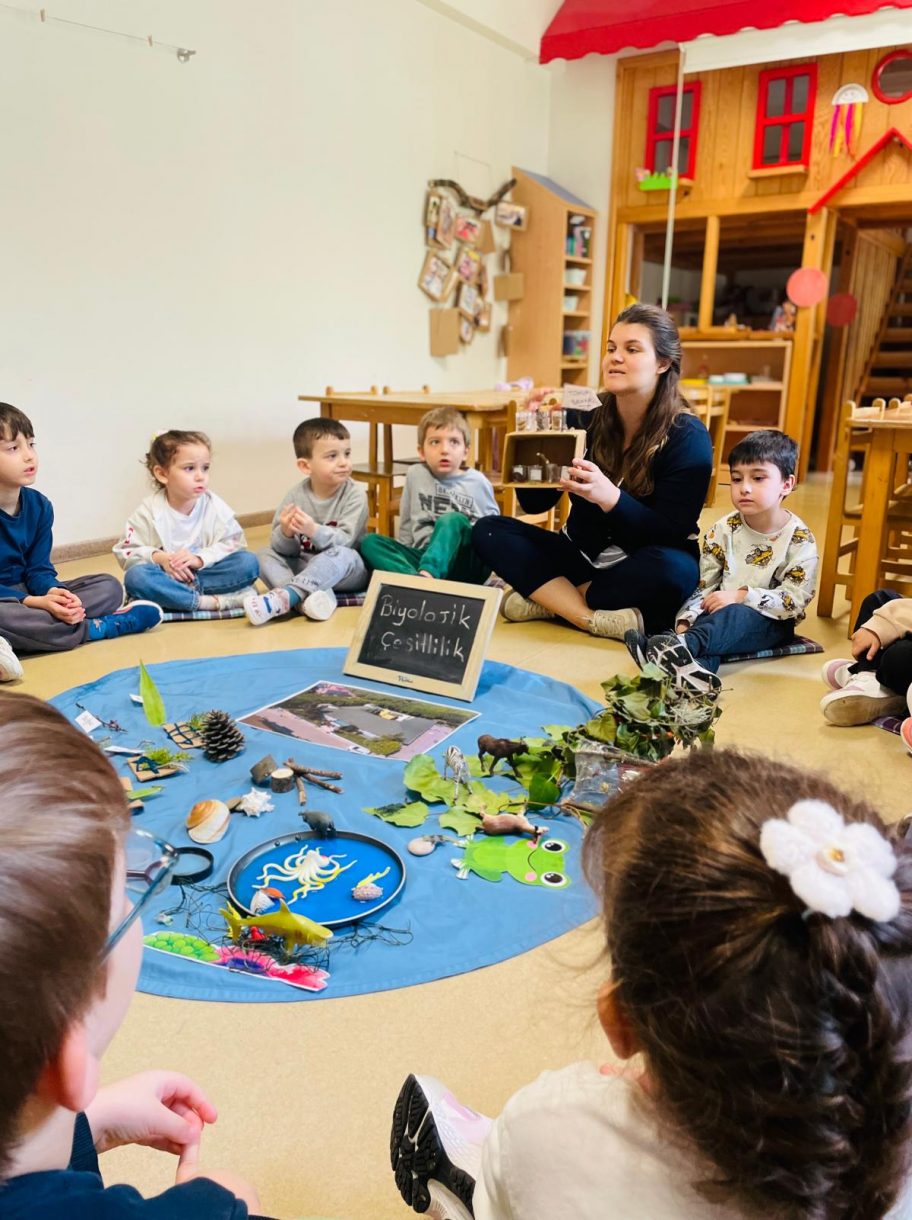 Çember saatinde "Tüm hayvanlar aynı mıdır?", "Bitkiler neden farklıdır?" ve "Hepsi aynı olsaydı dünyamız nasıl olurdu?" soruları üzerinden yapılan sohbetlerle öğrenciler, doğadaki canlı çeşitliliğini ve farklılıkların önemini kavradı.
