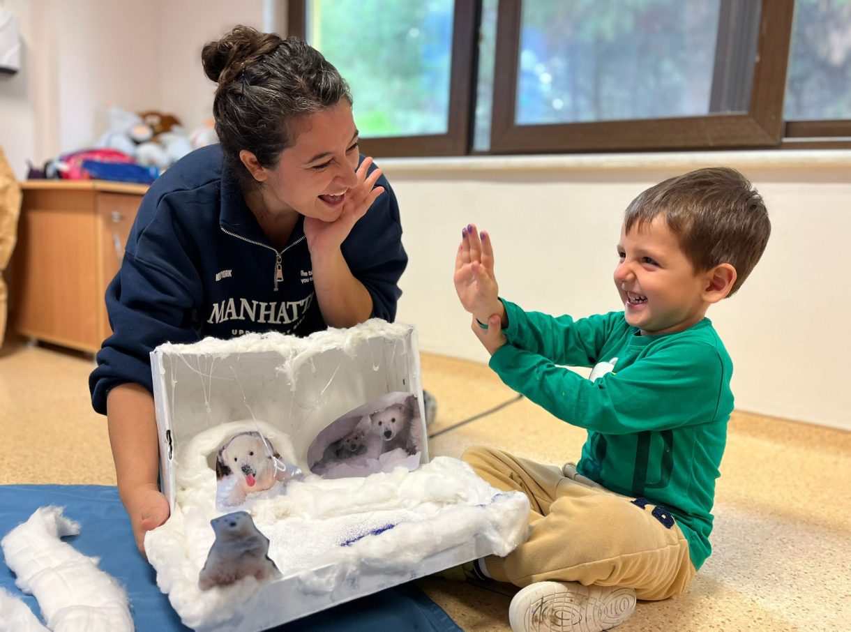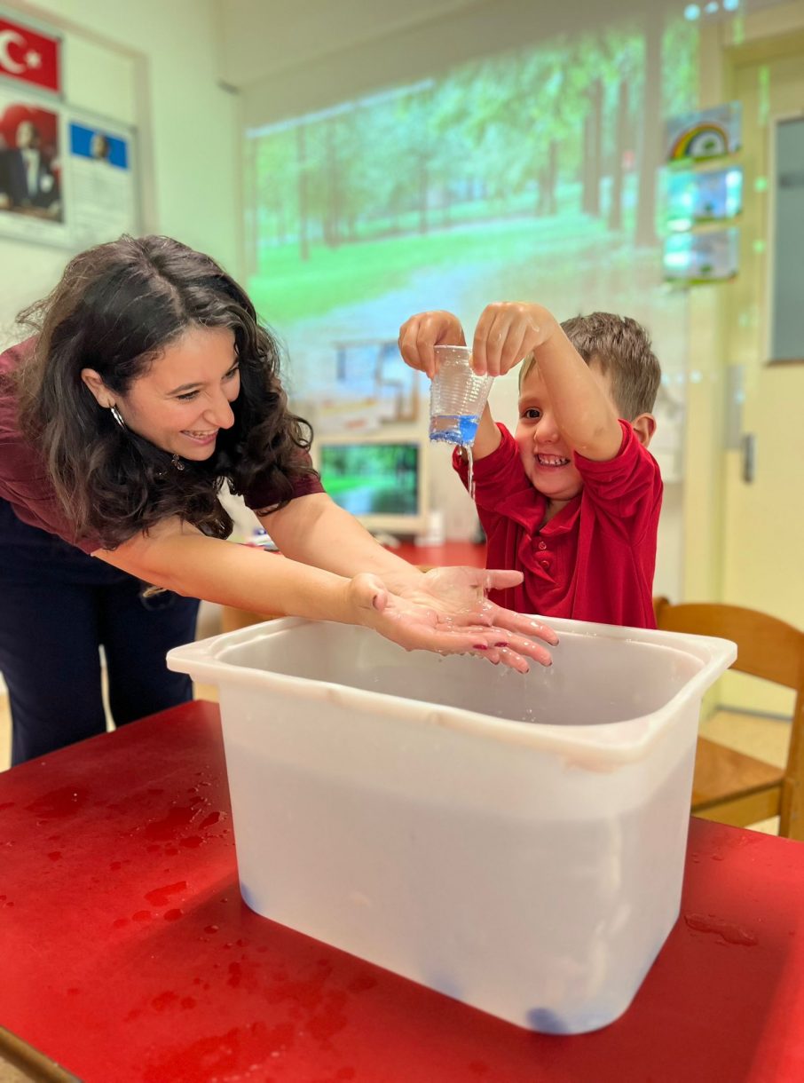 Dinlenme grubu öğrencileri, sonbahar konusunu işlerken canlı yapraklara dokunarak etkinlikler gerçekleştirdi. "Rainy" konusunu öğrenirken oynanan "Catch the Rain" oyunu ile öğrenciler yağmuru yakalayarak gerçek bir deneyim kazandı. "Polar Bear" kelimesi ise atık malzemelerden hazırlanan üç boyutlu materyallerle öğretildi.
