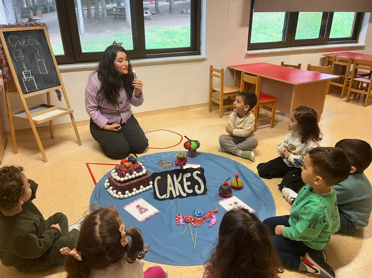 Dinlenme grubunda "birthday cake" ve "cupcake" temaları eşliğinde işlenen derslerde, parti konusu şarkılar, oyunlar ve canlandırmalarla destekleniyor. Bu sayede öğrenciler, İngilizce kelimeleri doğal bir süreç içinde öğreniyor.