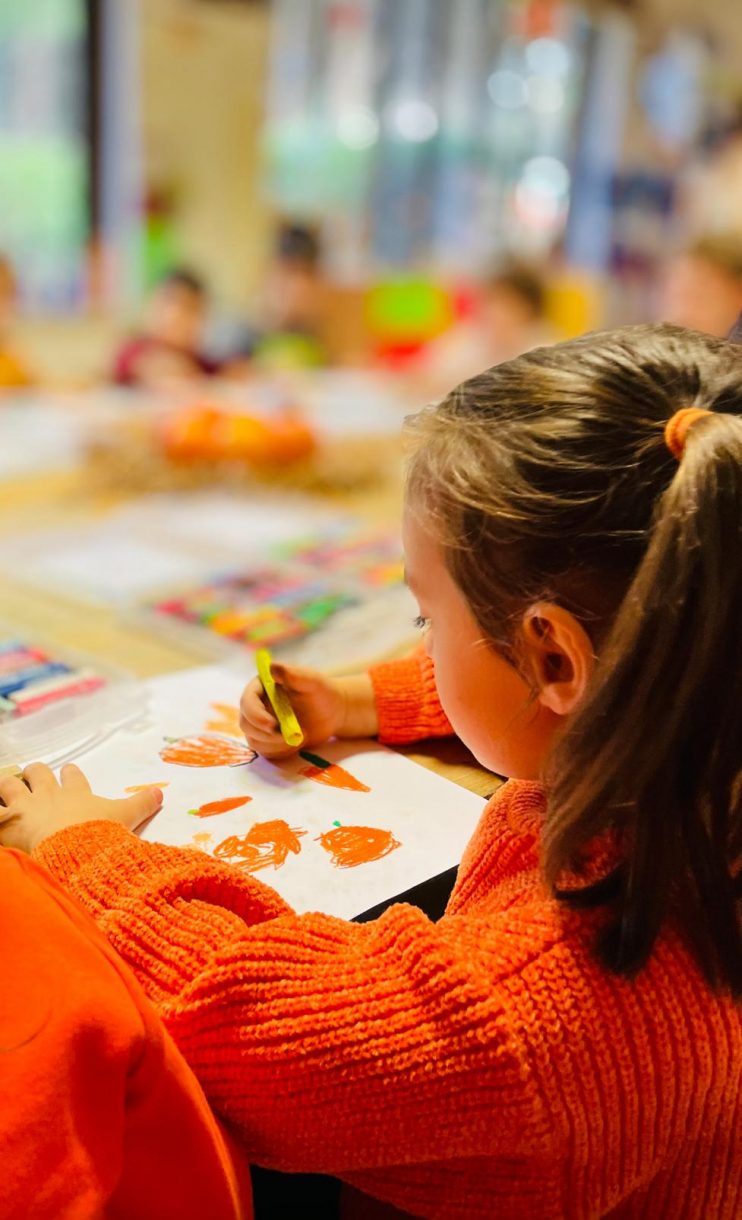 Etkinlik kapsamında çocuklarla birlikte sınıf masalarına yerleştirilen portakal, mandalina ve havuçlarla natürmort çalışmaları yapıldı. Çocuklar turuncunun farklı tonlarını incelerken; dokunarak, koklayarak ve gözlemleyerek hem sanatla hem de doğayla güçlü bir bağ kurdu.