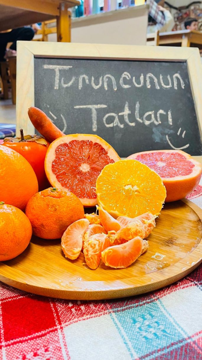 Turuncu meyvelerle zenginleşen hikâyeler, yapılan sanat çalışmaları ve keyifli tadımlar sayesinde çocuklar kış mevsimini tüm duyularıyla keşfetme fırsatı buldu.