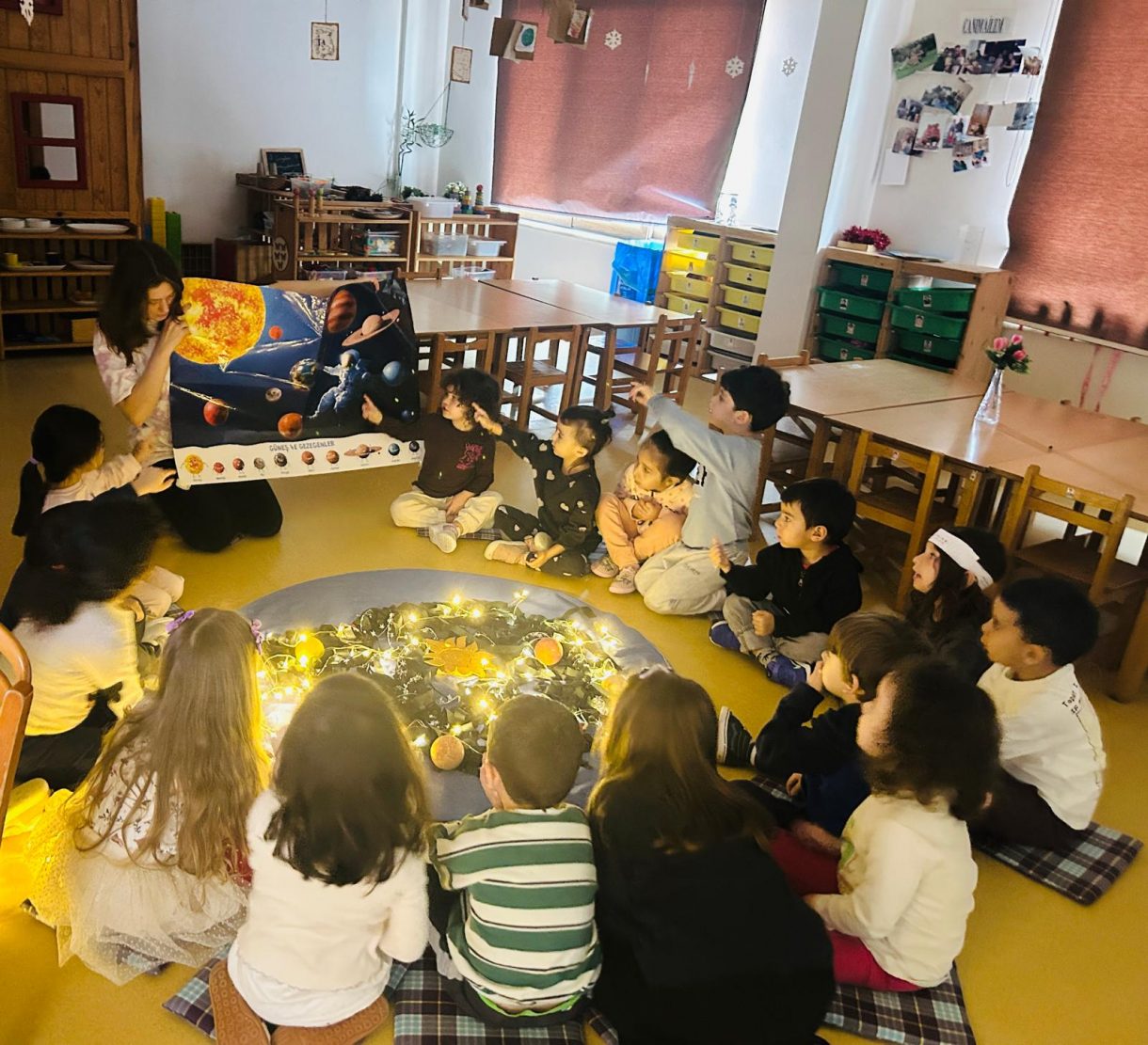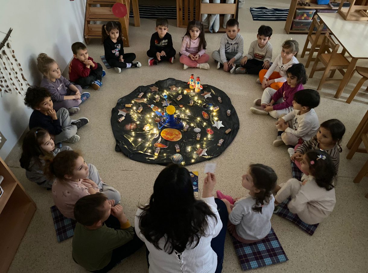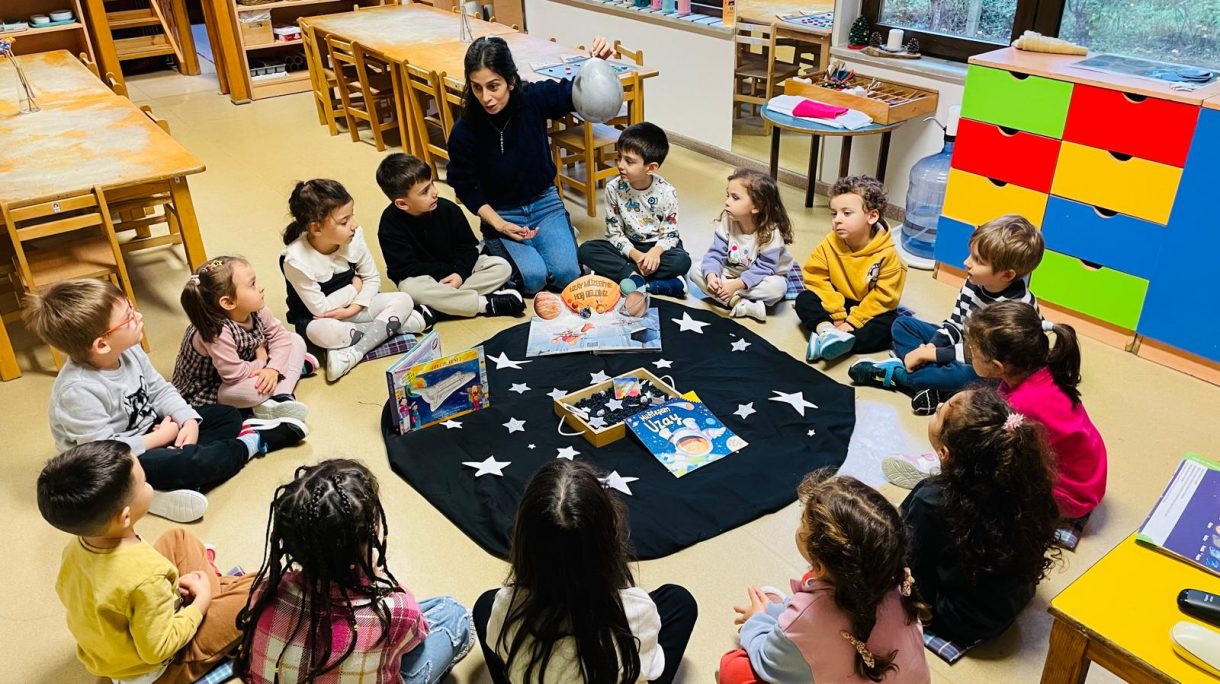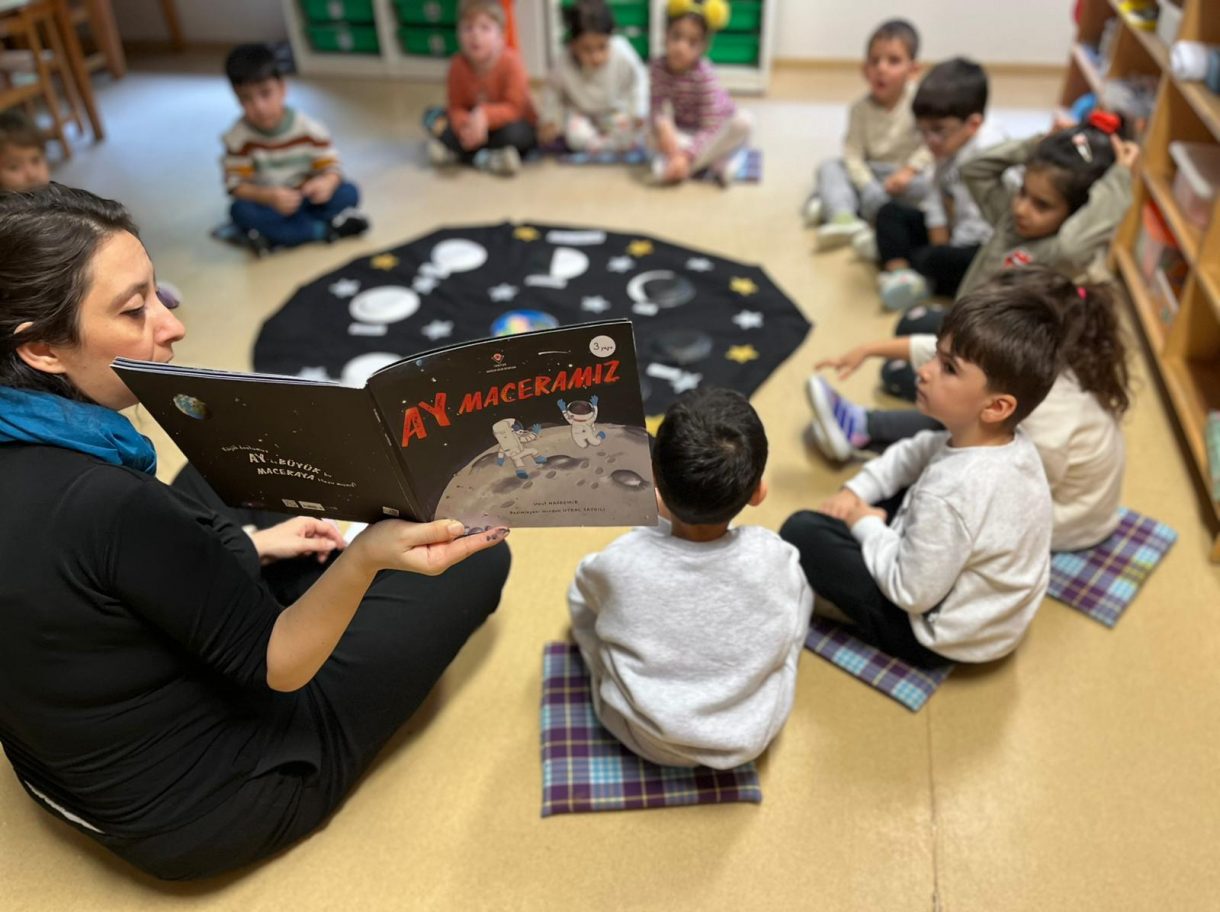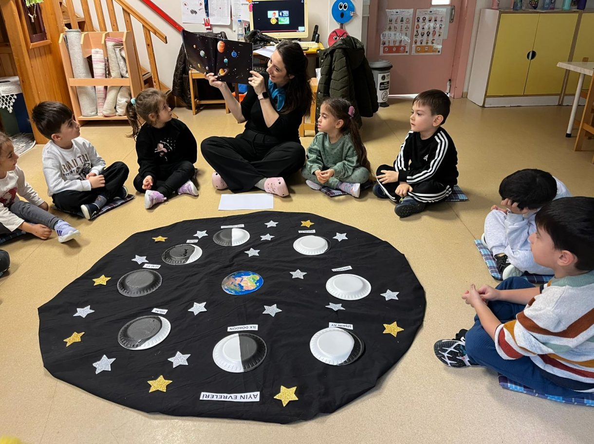 Çember saatlerinde; uzay, Güneş sistemi, Dünya'nın uydusu Ay, Ay'ın evreleri ve astronotların yaşamı konuları somut materyaller ve görseller eşliğinde işlendi. Etkinlikler kapsamında "Muhteşem Uzay", "Bak Şu Gezegene", "Ay Maceramız" ve "Ay'da" adlı kitaplar okunarak konular pekiştirildi.