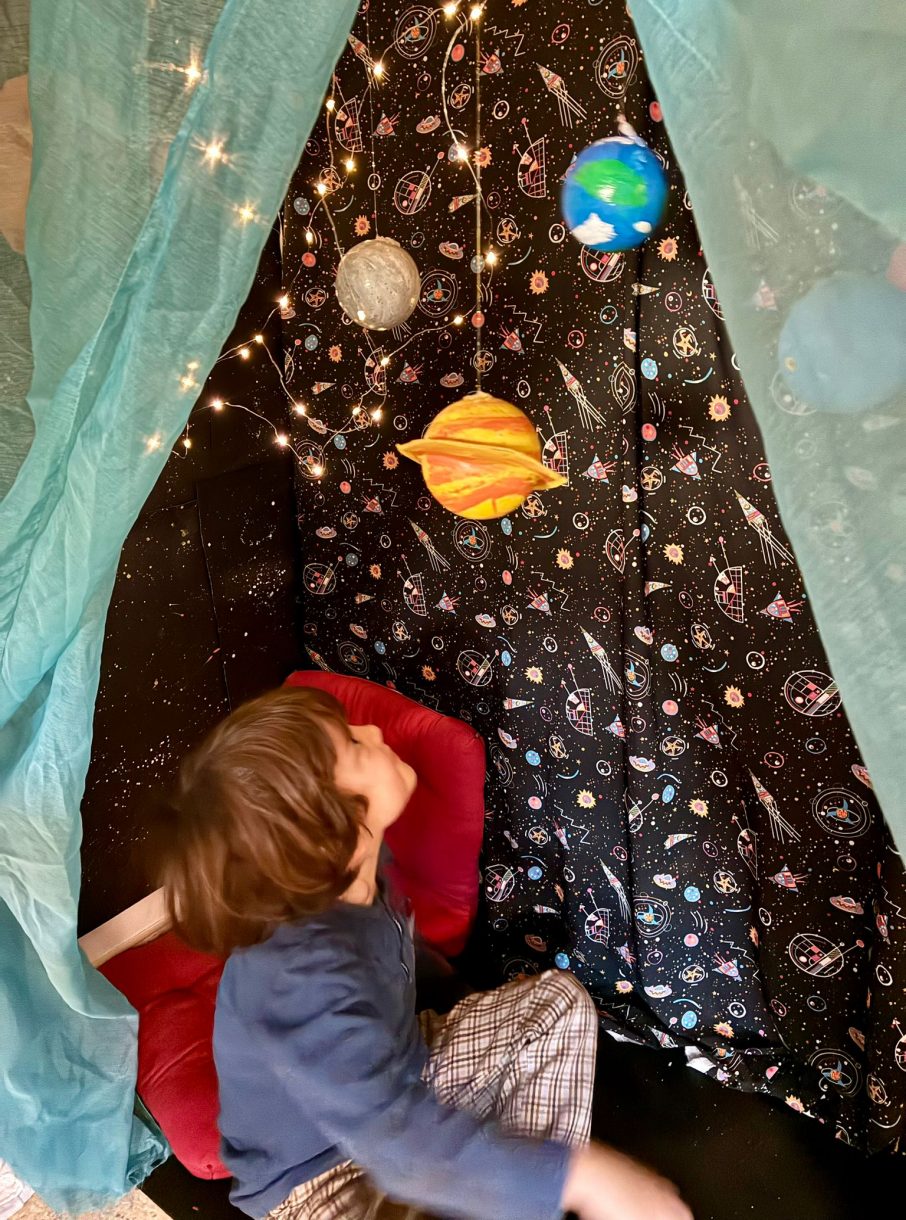 "Uzay Yolculuğu" drama etkinliğinde çocuklar astronot rolüne girerek gezegenler arasında dolaştı. "Kaybolan Gezegeni Bul" fen etkinliğiyle dikkat ve problem çözme becerileri desteklenirken, "Gökyüzüne bakınca neler görürüz?" sorusundan hareketle yapılan scamper çalışmalarıyla yaratıcı düşünme becerileri geliştirildi.