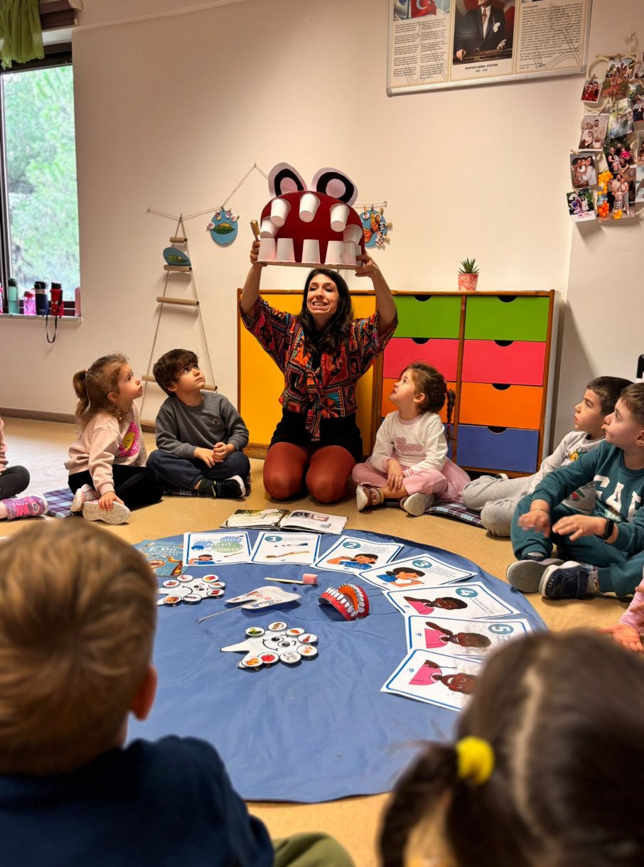 Vücut temizliği, el yıkama ve diş fırçalama canlandırmaları yapan öğrenciler, bildiklerini arkadaşlarıyla paylaşarak "Dişlerimizi fırçalamazsak ne olur?" gibi merak uyandıran soruların yanıtlarını birlikte keşfetti.