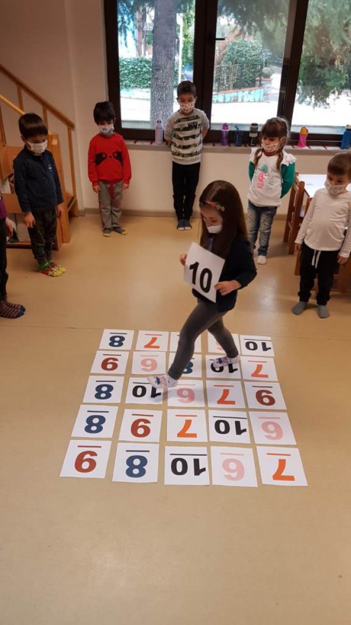 Okul öncesi dönemde en önemli ve en eğlenceli konulardan biri olan sayılar konusunu çocuklarımız ile somut olarak öğrenmeye devam ediyoruz. Sırada ki rakam 10. Çocuklarımızla çomak kukladan yapılmış 10 rakamını inceledik ve 10 küçük kedicik şarkısı ile dans etmelerine fırsat verdik. Etrafımızdaki nesnelerden 10 tanesini getirmelerini isteyerek öğrenmeyi keyifli hale getirdik. Verdiğimiz yönergeler eşliğinde yerde bulunan rakamların üzerine zıpladık. Hem büyük kas becerilerinin gelişmesine hem de bilişsel olarak algılama odaklanma ve dikkat çalışmasına olanak verdik. Gün içinde 10 sayısını kullanıp, el baskısı ile resim çalışması yaparak öğrendiklerimizi pekiştirdik.