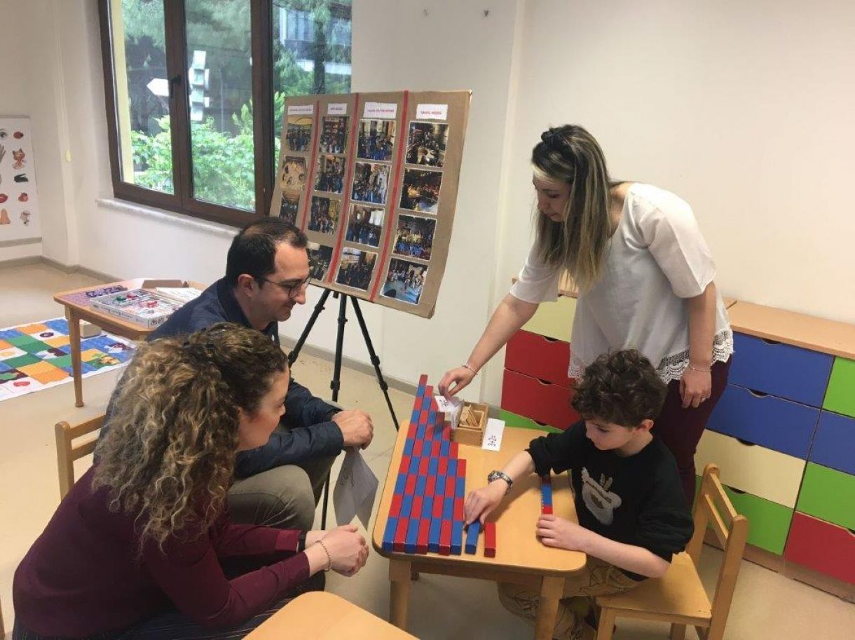 Montessori kabartma harfler ile ses çalışmaları, Kırmızı mavi çubuklar ile toplama-çıkarma işlemi, Toprağın altında ki gizli hazine projesinde öğrendiklerimiz, Evvel zaman içinde müzelerin izinde projesi kapsamında gitmiş olduğumuz müzeler, Kodlama dersinde çalışmış olduğumuz çıt çıt devreler ve Cubetto robot ile yaptığımız çalışmaları tamamlayarak 1 yıl boyunca elde etmiş oldukları kazanımları ailelerine sundular.