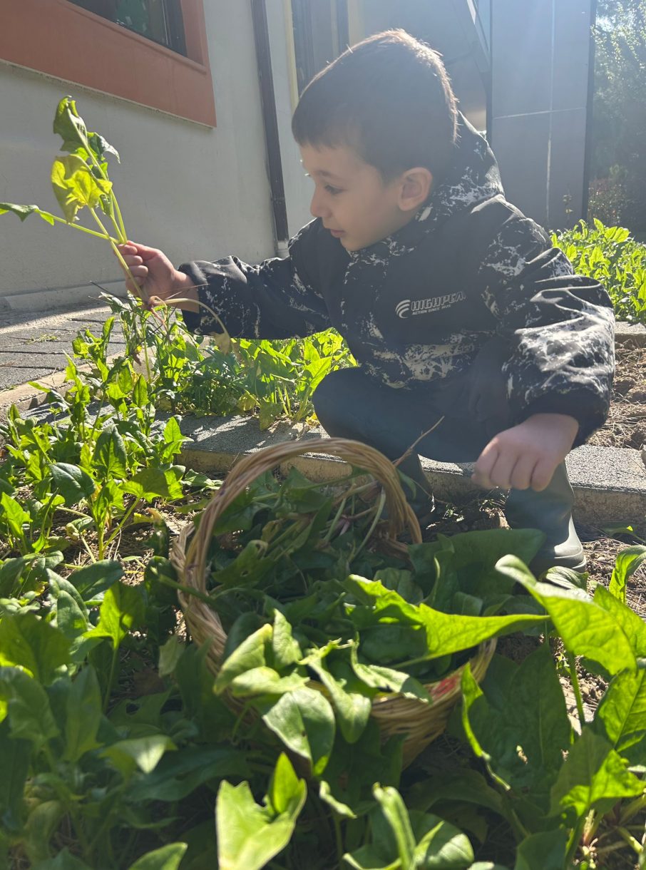 3 Mart Beşevler Anaokulu öğrencileri, okulun sebze bahçesinde ektikleri ıspanakların hasadını gerçekleştirerek üretim sürecini yakından deneyimledi. Bir süre önce minik ellerin toprakla buluşturduğu ıspanak tohumları, düzenli bakım ve sulama sayesinde büyüyerek hasat edilecek olgunluğa ulaştı.