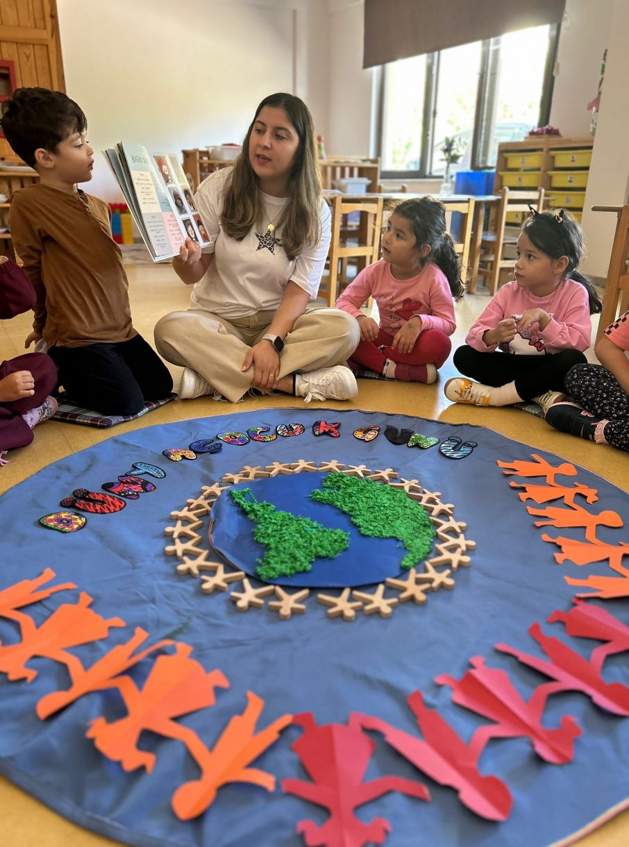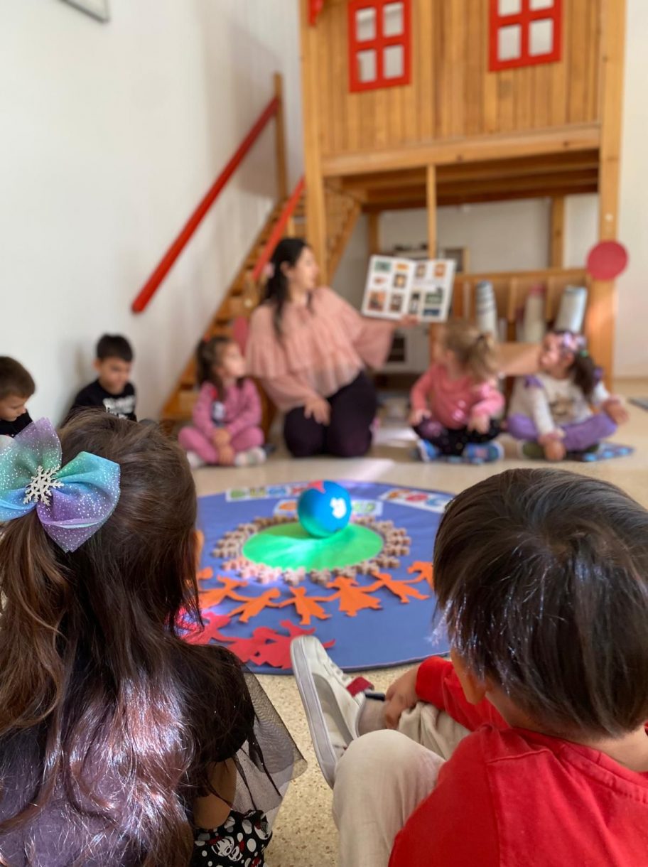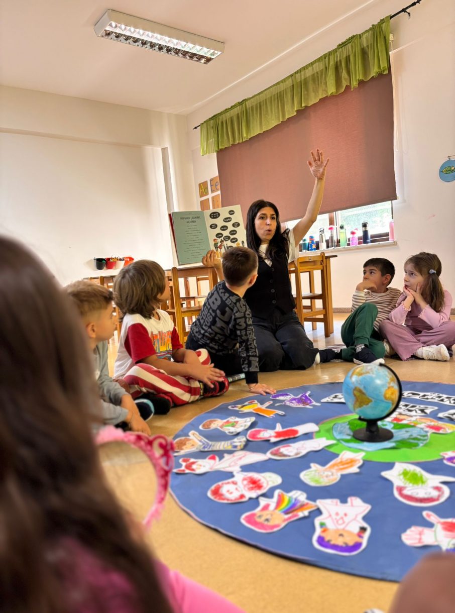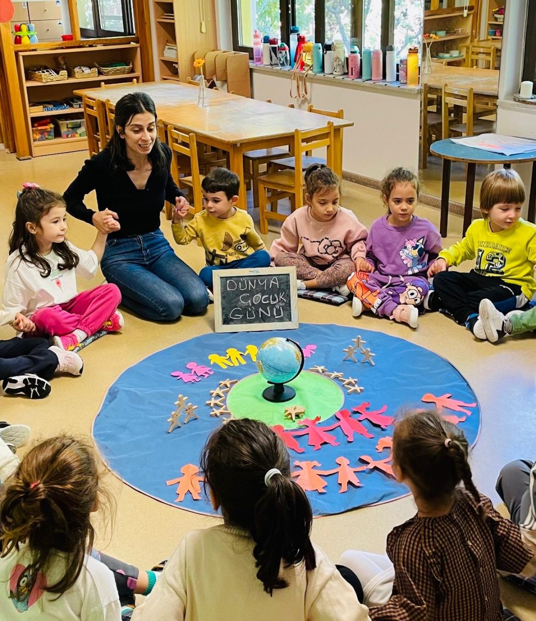 Çember etkinliğinde "Çocuk olmak neden güzeldir?", "Elinde sihirli bir değnek olsa bu dünyada neyi değiştirirdin?" ve "Bugün başka ülkelerdeki çocuklar neler yapıyor olabilir?" gibi sorular üzerine sohbet eden minikler, dünyadaki tüm çocukları düşünerek bolca sorguladılar.
