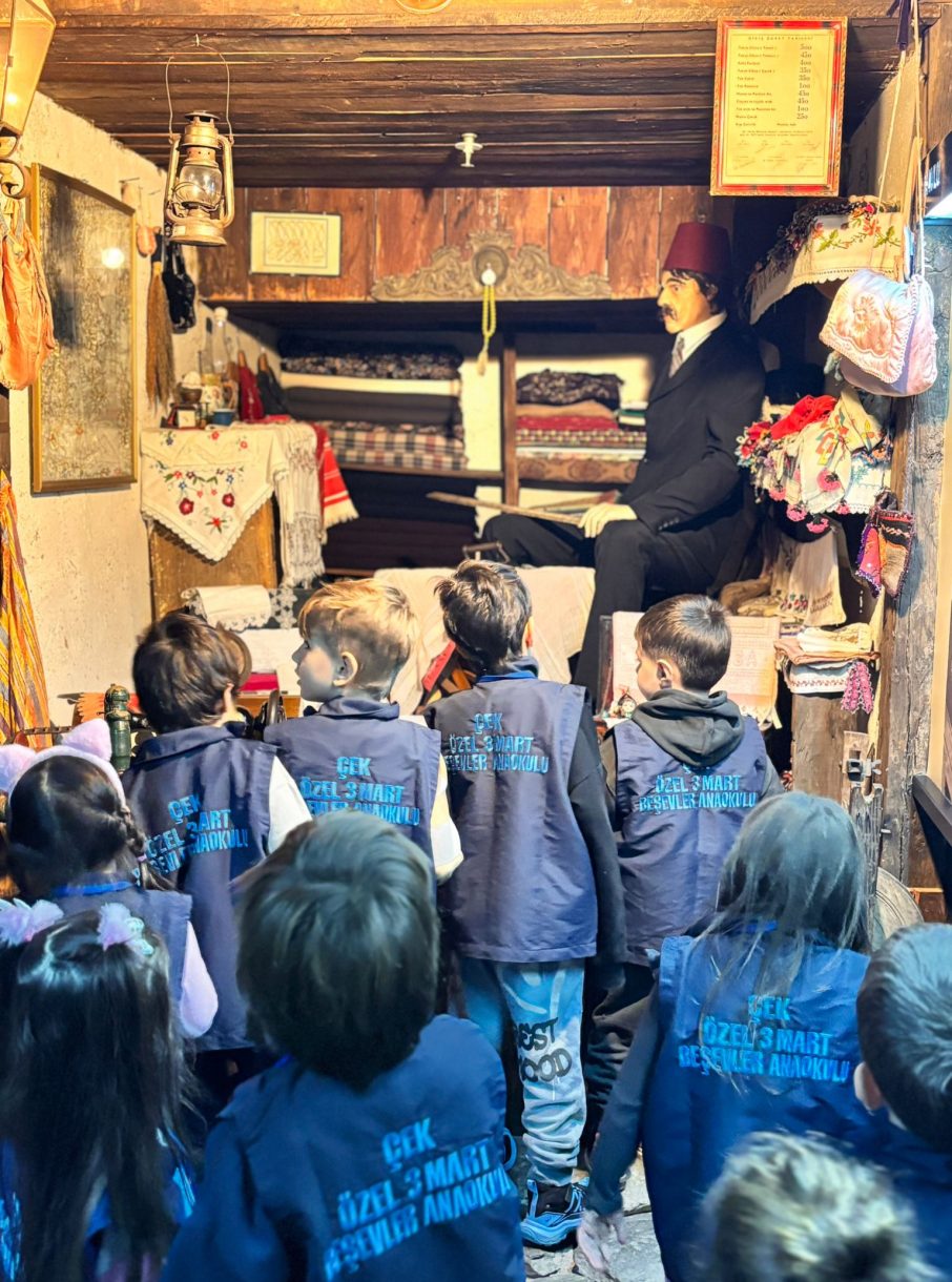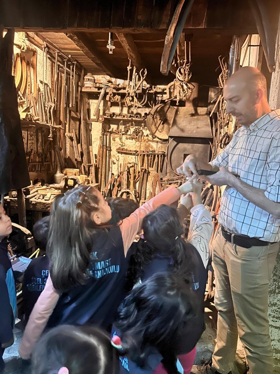 Etkinliğin devamında çarşı bölümüne geçen öğrenciler; nalbant, yemenici, sepetçi ve marangoz gibi geçmişte yaygın olan meslekleri yerinde inceleme fırsatı buldu. Çocuklar, kaybolmaya yüz tutmuş meslekleri gözlemleyerek hem tarihî bir yolculuk yaptı hem de günlük yaşamla ilişkilendirilmiş keyifli bir öğrenme süreci yaşadı.
