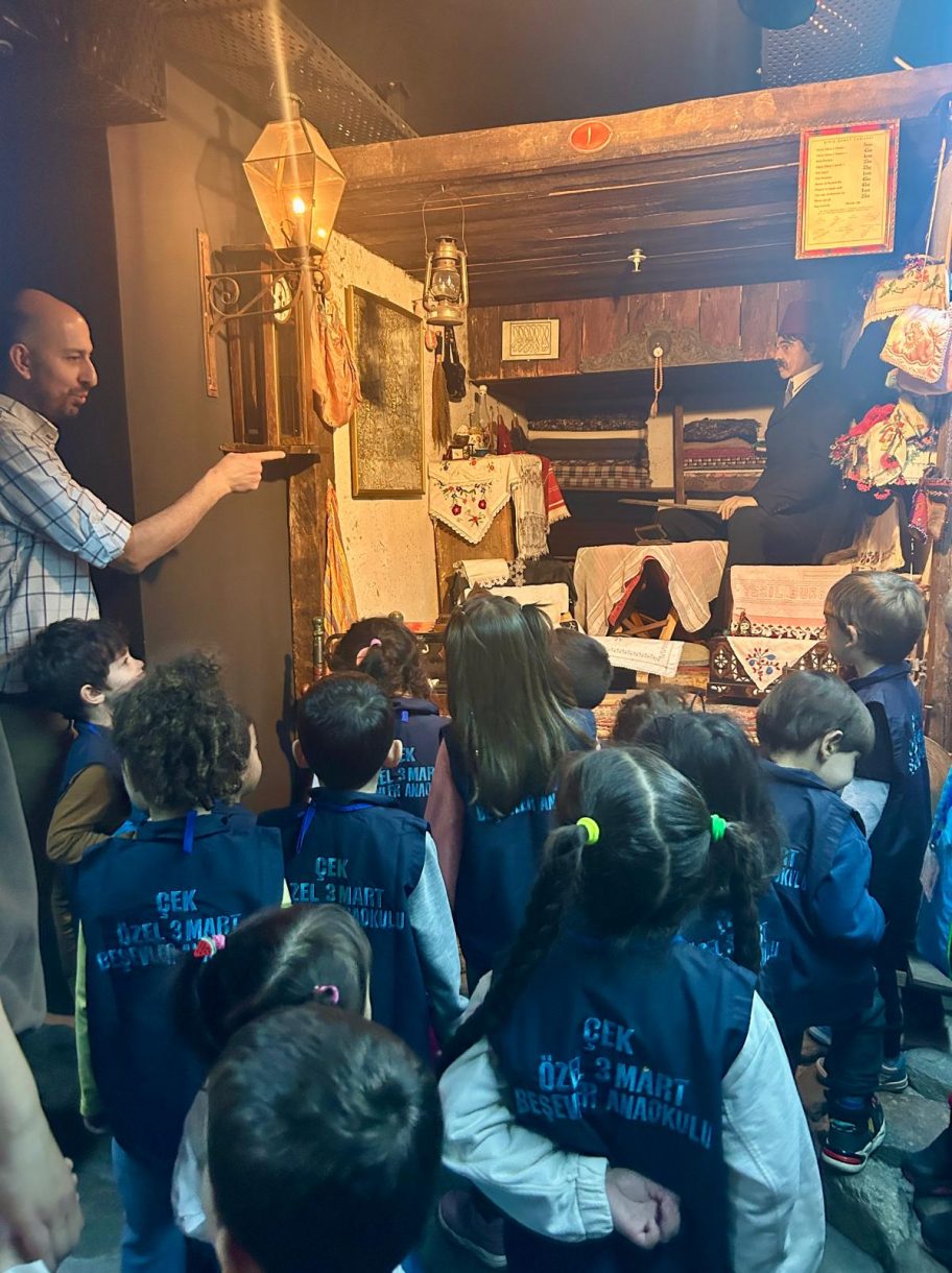 3 Mart Beşevler Anaokulu öğrencileri, "Evvel Zaman İçinde Müzelerin İzinde" projesi kapsamında Bursa Kent Müzesi'ni ziyaret ederek "Çarşı Bölümü - Kaybolan Meslekler" temalı bütünleştirilmiş drama çalışmasına katıldı.
