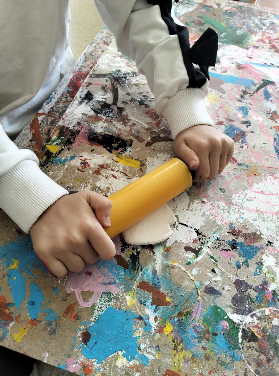 Minik öğrenciler, ilk kez çamurla tanışarak ellerini sanatın en doğal malzemesiyle buluşturdu. Serbest şekiller oluşturdular, hayallerinden ilham alarak çamurdan kolyeler tasarladılar ve kendi seçtikleri renklerle boyadıkları eserlerini tamamladılar.
