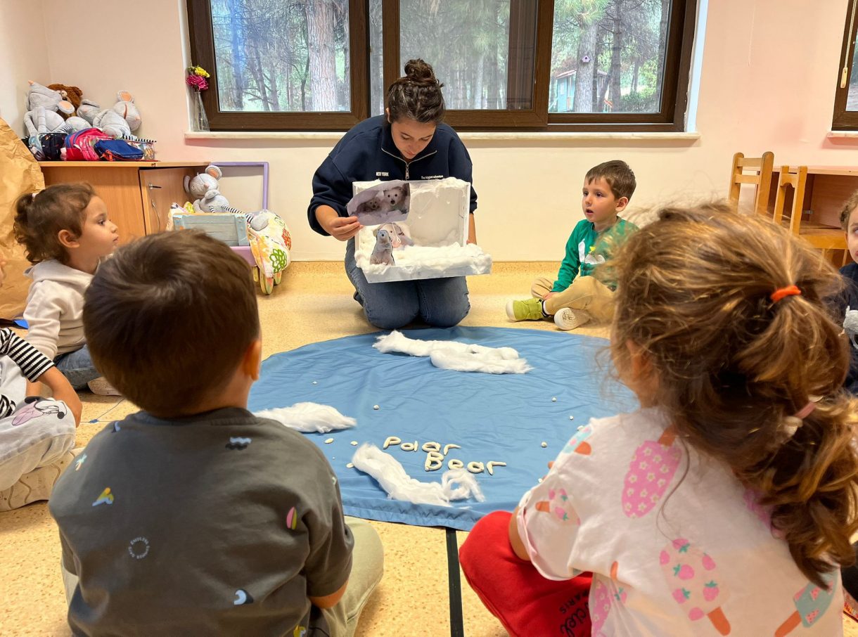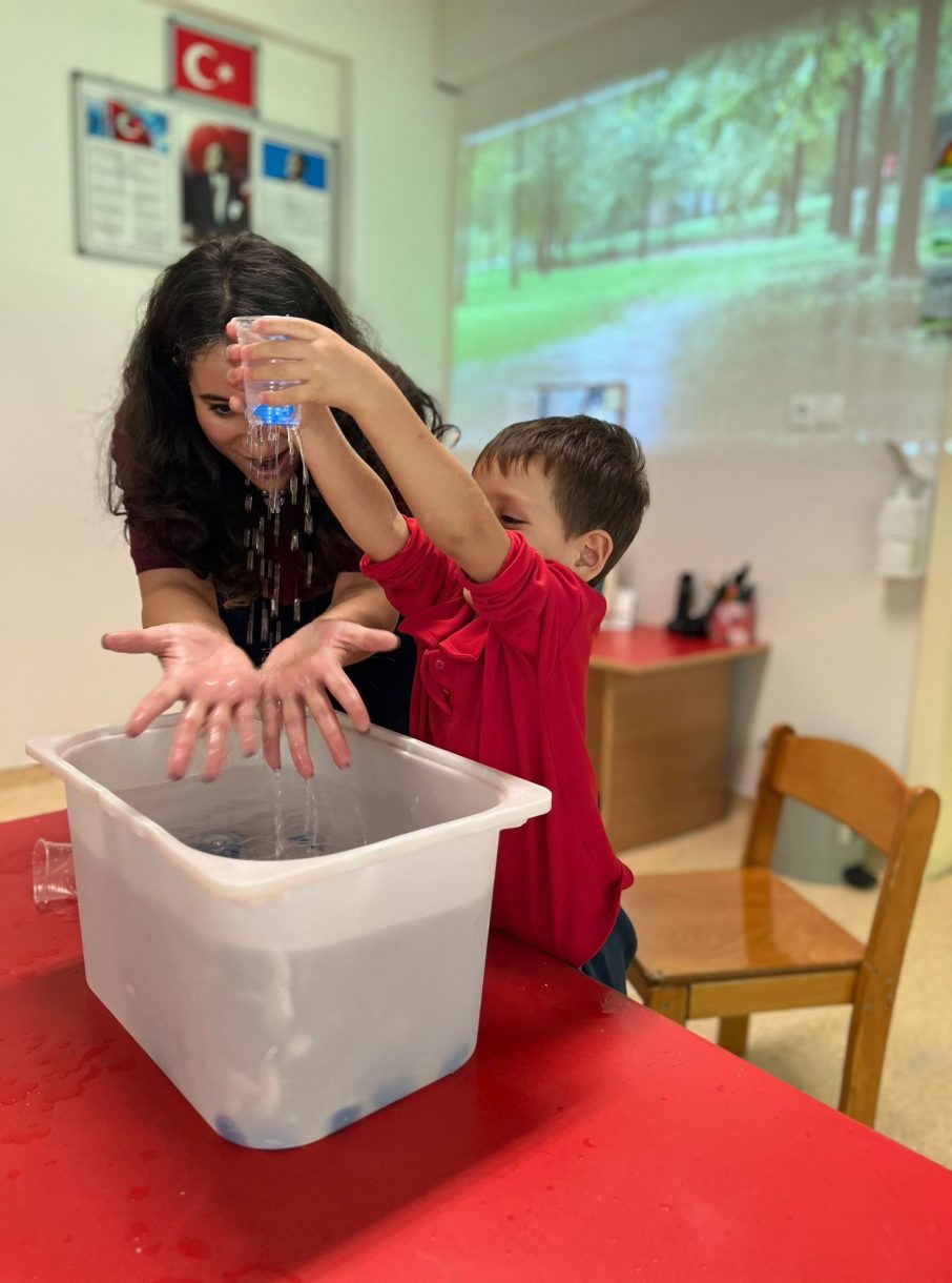 Dinlenme grubu öğrencileri, sonbahar konusunu işlerken canlı yapraklara dokunarak etkinlikler gerçekleştirdi. "Rainy" konusunu öğrenirken oynanan "Catch the Rain" oyunu ile öğrenciler yağmuru yakalayarak gerçek bir deneyim kazandı. "Polar Bear" kelimesi ise atık malzemelerden hazırlanan üç boyutlu materyallerle öğretildi.