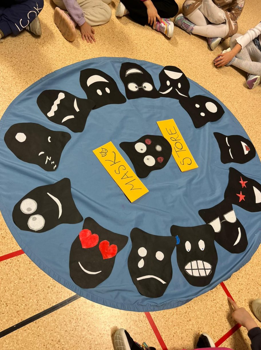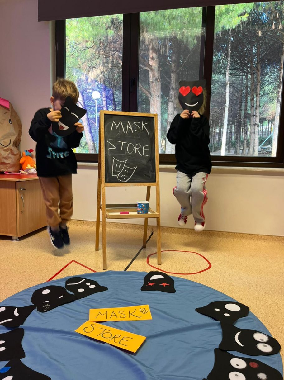 İngilizce drama çalışmalarında sınıf bu kez "Maske Dükkânı"na dönüştü. Öğrenciler hazırladıkları renkli maskelerle mutlu, üzgün, kızgın ve şaşkın gibi duyguları İngilizce ifadelerle canlandırdı. Müşteri ve satıcı rollerine giren öğrenciler, İngilizceyi doğal bir iletişim aracı olarak kullandı.