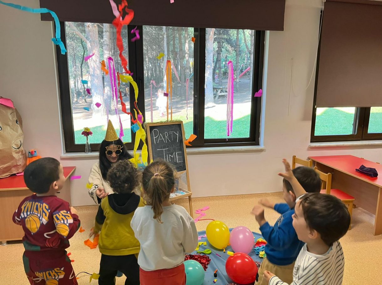Dinlenme grubunda "birthday cake" ve "cupcake" temaları eşliğinde işlenen derslerde, parti konusu şarkılar, oyunlar ve canlandırmalarla destekleniyor. Bu sayede öğrenciler, İngilizce kelimeleri doğal bir süreç içinde öğreniyor.