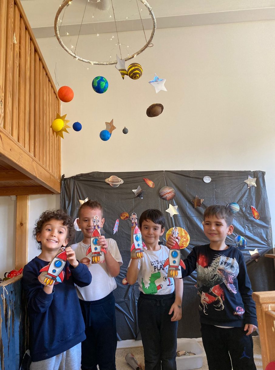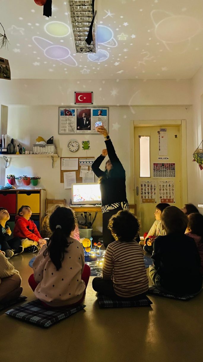 "Uzay Yolculuğu" drama etkinliğinde çocuklar astronot rolüne girerek gezegenler arasında dolaştı. "Kaybolan Gezegeni Bul" fen etkinliğiyle dikkat ve problem çözme becerileri desteklenirken, "Gökyüzüne bakınca neler görürüz?" sorusundan hareketle yapılan scamper çalışmalarıyla yaratıcı düşünme becerileri geliştirildi.