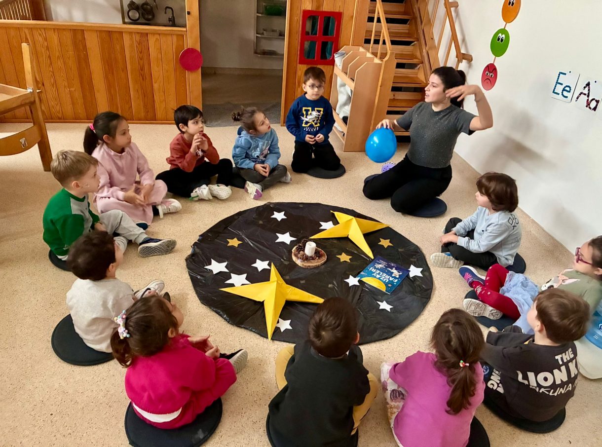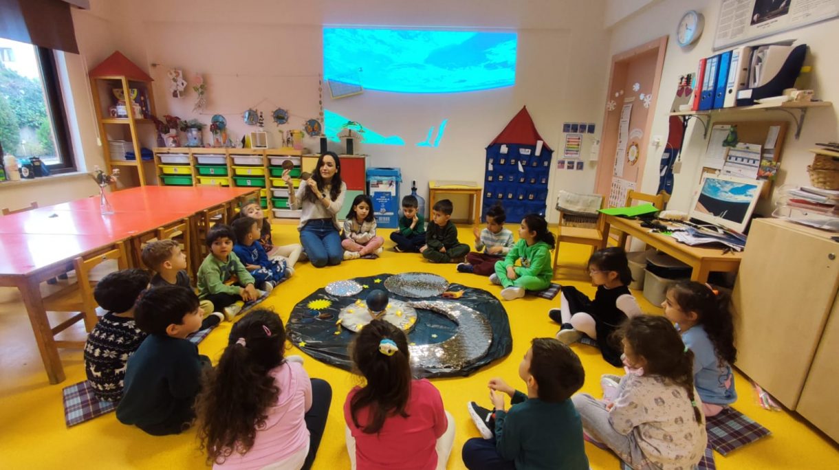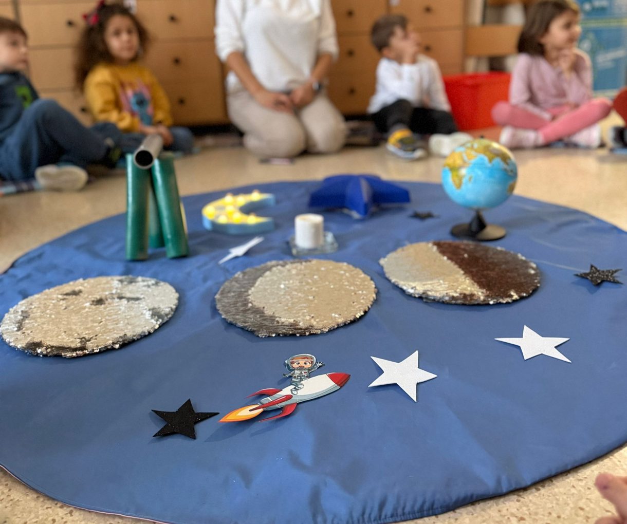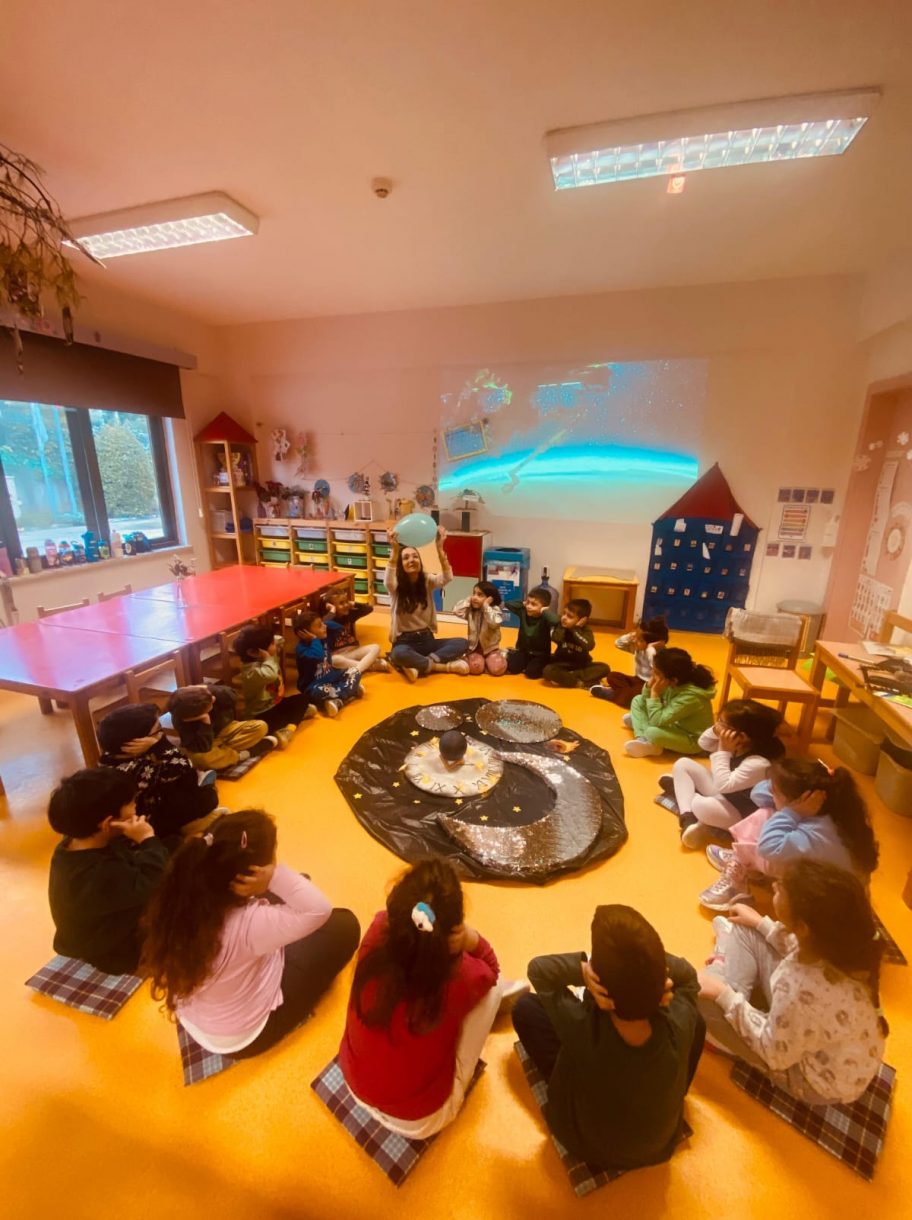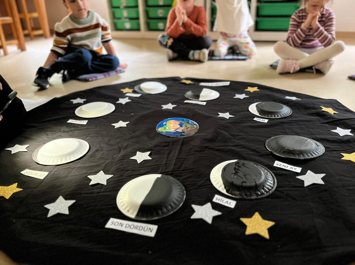 Çember saatlerinde; uzay, Güneş sistemi, Dünya'nın uydusu Ay, Ay'ın evreleri ve astronotların yaşamı konuları somut materyaller ve görseller eşliğinde işlendi. Etkinlikler kapsamında "Muhteşem Uzay", "Bak Şu Gezegene", "Ay Maceramız" ve "Ay'da" adlı kitaplar okunarak konular pekiştirildi.