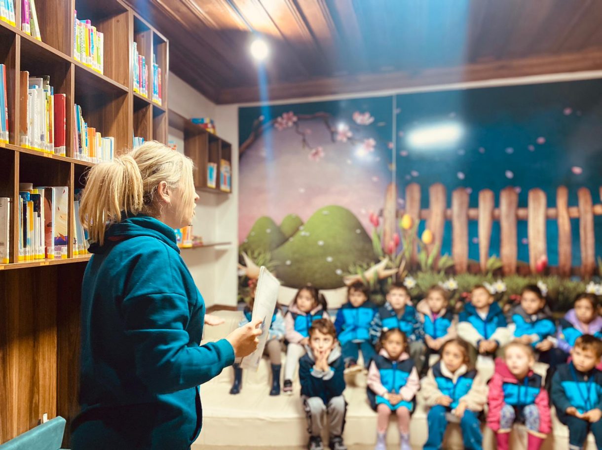 Rengârenk cephesiyle dikkat çeken kütüphaneyi ilk kez gören minikler, heyecan ve merakla içeri adım attı. Kitap kokusunun sardığı salonda, kütüphane görevlisi çocuklara kitaplarla dolu bu özel ortamda nasıl davranmaları gerektiğini anlattı ve kütüphane üyeliği hakkında bilgi verdi.